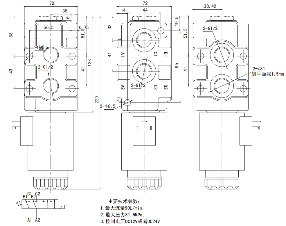 1.DVS0是分片式6通電磁切換閥閥,也可以做成8通和10通的油路。